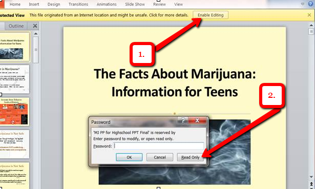 Please be aware that once downloaded, the presentations will not allow editing nor will they allow users to make a copy for themselves. Please follow these steps to open the documents (View Screenshot):